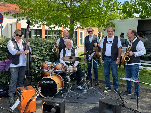 Ce jeudi 15 mai, l’Orchestr’Estantens a apporté une belle touche musicale au marché de plein vent d’Estantens, avec une animation en fanfare en fin d’après-midi. Les passants, voisins et habitués du marché ont pu profiter d’un moment chaleureux et convivial en musique, avant de partager un apéritif offert à tous sur place.