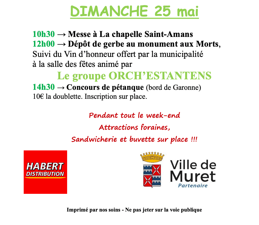 🎯 14h30 – Concours de pétanque en doublette (10€), inscription sur place – bord de Garonne